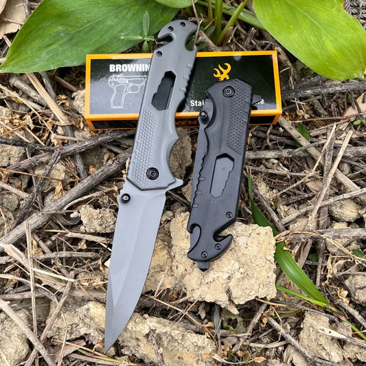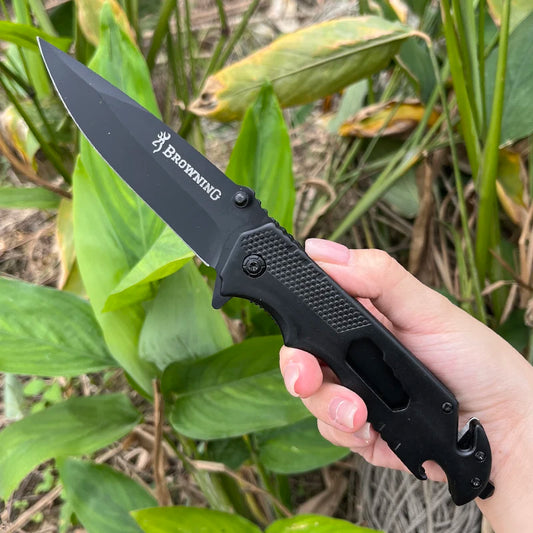 Black steel outdoor folding knife portable pocket knife sharp outdoor rescue
